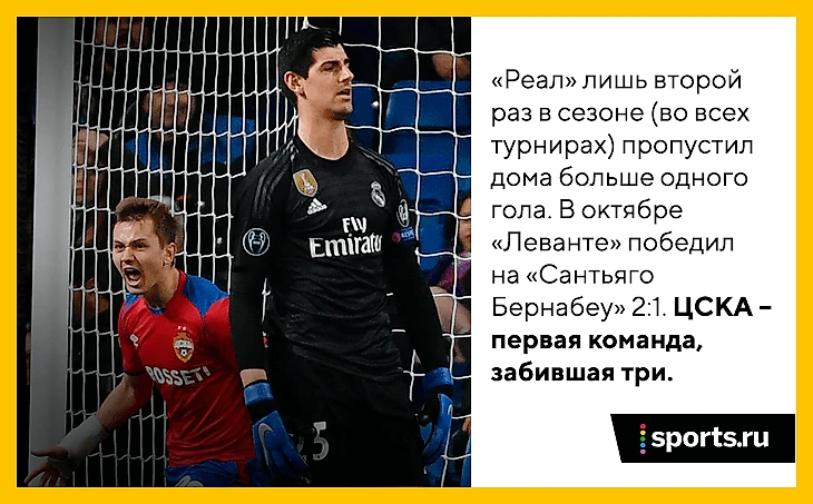 • До встречи с ЦСКА «Реал» забивал в 44 подряд домашних матчах ЛЧ: последней командой, не пропустившей в этом турнире на «Сантьяго Бернабеу», была «Барселона». Весной 2011-го каталонцы победили в Мадриде 2:0.