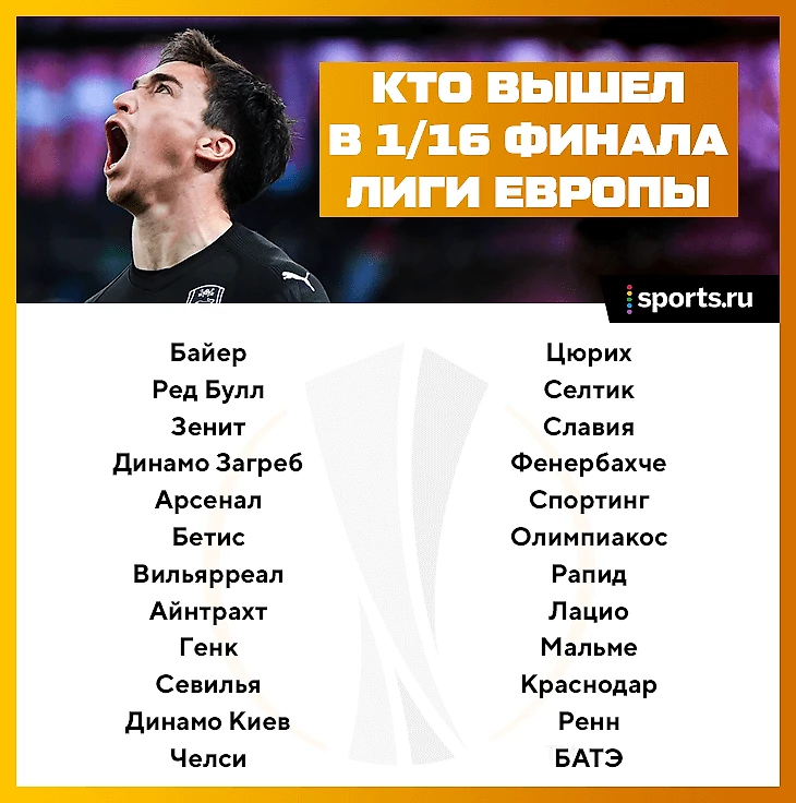 В число сеяных команд 1/16 финала Лиги Европы попали 12 победителей групп и 4 команды с лучшим результатом среди тех, которые заняли третьи места в группах Лиги чемпионов.