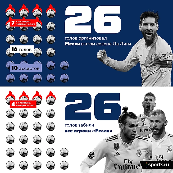 Один Месси организовал в Ла Лиге 26 голов. Весь «Реал» забил столько же