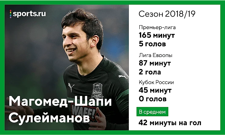 Впечатляет, хотя есть еще одна фантастическая деталь: Сулейманов в среднем наносит 0,8 удара за игру (не за 90 минут, а именно за матч, когда выходит на поле). То есть у него залетает примерно все.
