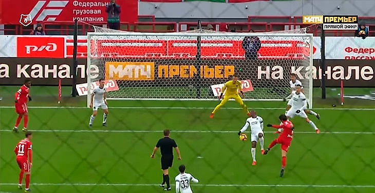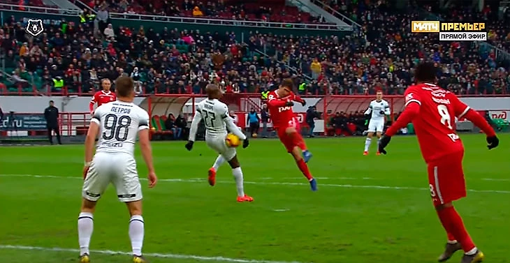 • Ключевой момент матча – это, конечно, пенальти. Точка за игру рукой Каборе – один из тех моментов, в которых сильно не помог бы и VAR. Даже на повторах сложно рассмотреть, попал ли мяч только в руку или в бедро и в руку одновременно (в таком случае это не пенальти). При этом Михаил Вилков стоял очень близко к эпизоду и почти не сомневался.
