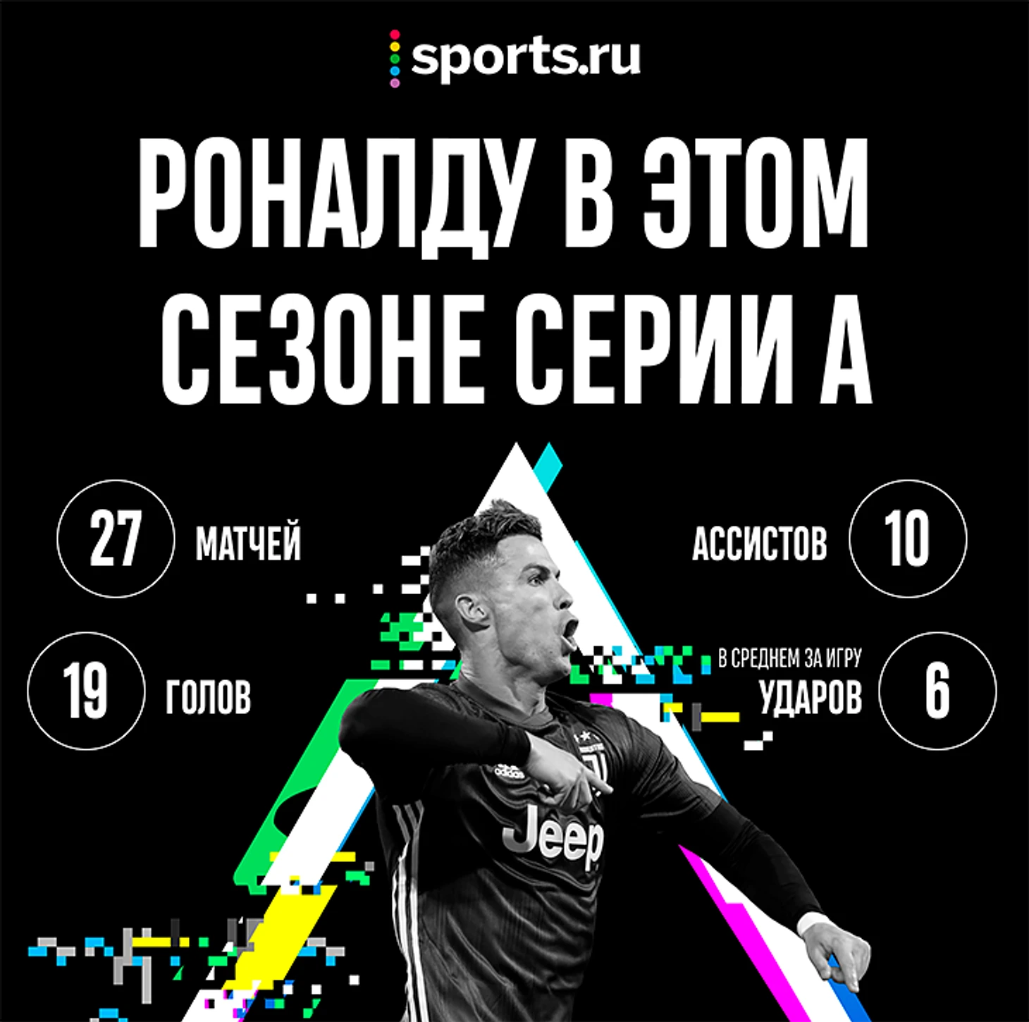 • Криштиану снова чемпион. Миссия в Турине пока не выполнена – «Юве» вылетел из ЛЧ, Криштиану с 19 мячами лишь четвертый в топе бомбардиров лиги (у Сапаты 20, у Пионтека 21, у Куальяреллы 22). Но цифры у Рона все равно красивые.