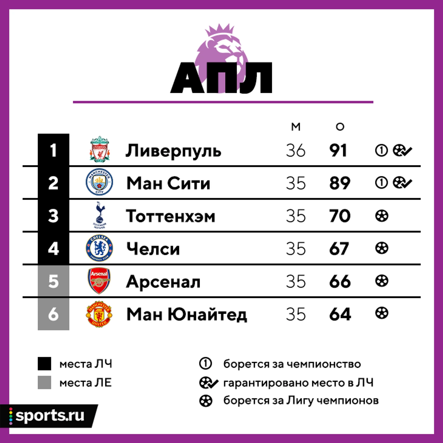 • Чемпионская гонка теоретически может закончиться раньше (если кто-то выдохнется), а вот в борьбе за ЛЧ все точно решится только в 38-м туре. Одна из ключевых игр в этой битве – «Юнайтед» против «Челси» (уже в это воскресенье).