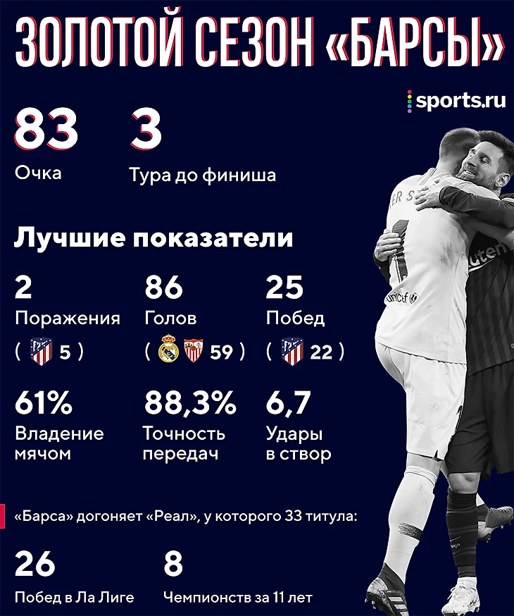 • Это 26-й титул клуба, до «Реала» (33) еще далековато, но каталонцы стремительно подбираются: за последние 11 лет они выиграли Ла Лигу 8 раз.