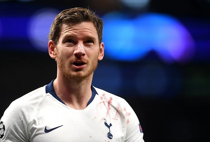 Вот момент столкновения. Вертонген врубился прямо в партнера Тоби Алдервейрелда (тоже бывший игрок «Аякса»).