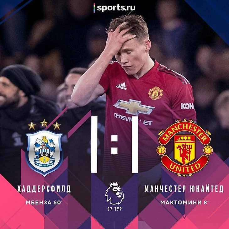 «Манчестер Юнайтед» не смог обыграть худшую команду премьер-лиги – «Хаддерсфилд». Ничья 1:1 в гостях. За «МЮ» забил Скотт Мактомини (пожалуй, единственный игрок Сульшера, которому должно быть не стыдно за концовку сезона), за «Хаддерсфилд» – Айзек Мбенза.