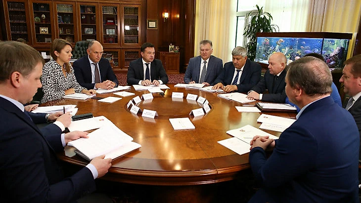 Алексей Дорофеев (пятый слева) на совещании с губернатором Московской области Андреем Воробьевым