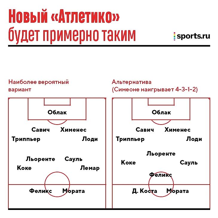"Атлетико" Симеоне никогда не играл в двух однотипных центрфорвардов. Феликс никогда не играл на позиции под двумя однотипными центрфорвардами (хотя в "Бенфике" такая возможность была - Сеферович и Жонас вполне аналог Морате с Костой). "Атлетико" играл с одним центрфорвардом и Гризманном в роли оттянутого нападающего, действующего по всему фронту атаки. "Бенфика" играла с одним центрфорвардом и Феликсом в роли оттянутого нападающего, действующего по всему фронту атаки. Феликс настолько прямая, буквальная замена Гризманну, что более очевидной и не придумать. Именно поэтому за него заплатили все отступные, особо не торгуясь. Не потому что он какой-то там перспективный и талантливый. Вернее, не столько по этому, - за его талант его хотели другие клубы, но не были готовы на 120. А атлеты были - потому что он видится оптимальной, прямой заменой французу. Именно чтобы принципиально ничего в игре не менять. Автор перепутал вообще всё, что можно было.
