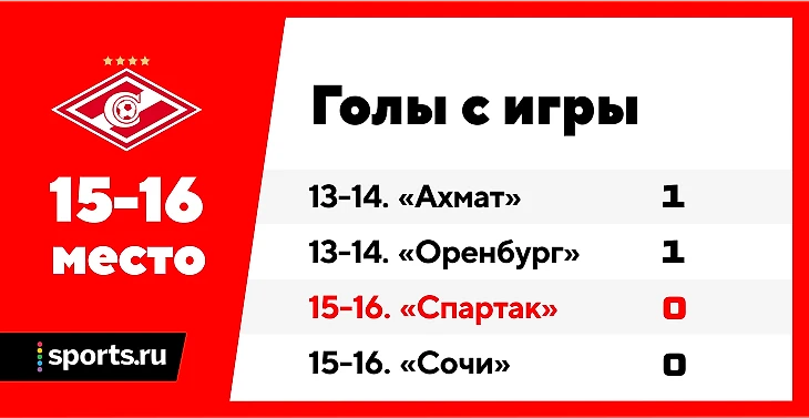 Логичное следствие проблем – 0 голов с игры. Все, кроме «Сочи», уже забили хотя бы по одному мячу с игры.
