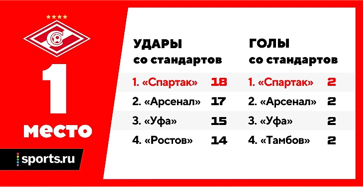 Есть и хорошие новости. «Спартак» – лидер по ударам и голам со стандартов.