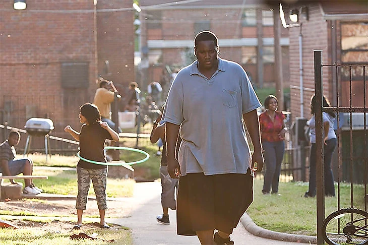 Это история о бедном черном парне по имени Майкл, которого приютила богатая белая семья. Майкл плохо учился и плохо (сначала) играл в американский футбол, но потом постарался и все стало довольно хорошо, он поступил в университет, впоследствии был задрафтован «Балтимором» в первом раунде и заработал какое-то количество миллионов долларов в НФЛ. Звучит как ужасный голливудский сценарий, который вы бы и сами написали левой пяткой, да? Собственно, как и в случае с «Маниболом», если считать историю выдумкой, кажется, что сценариста хорошо бы четвертовать, но затем выясняется, что сюжет в общих чертах взят из жизни – и тут уже ему предъявить довольно трудно.