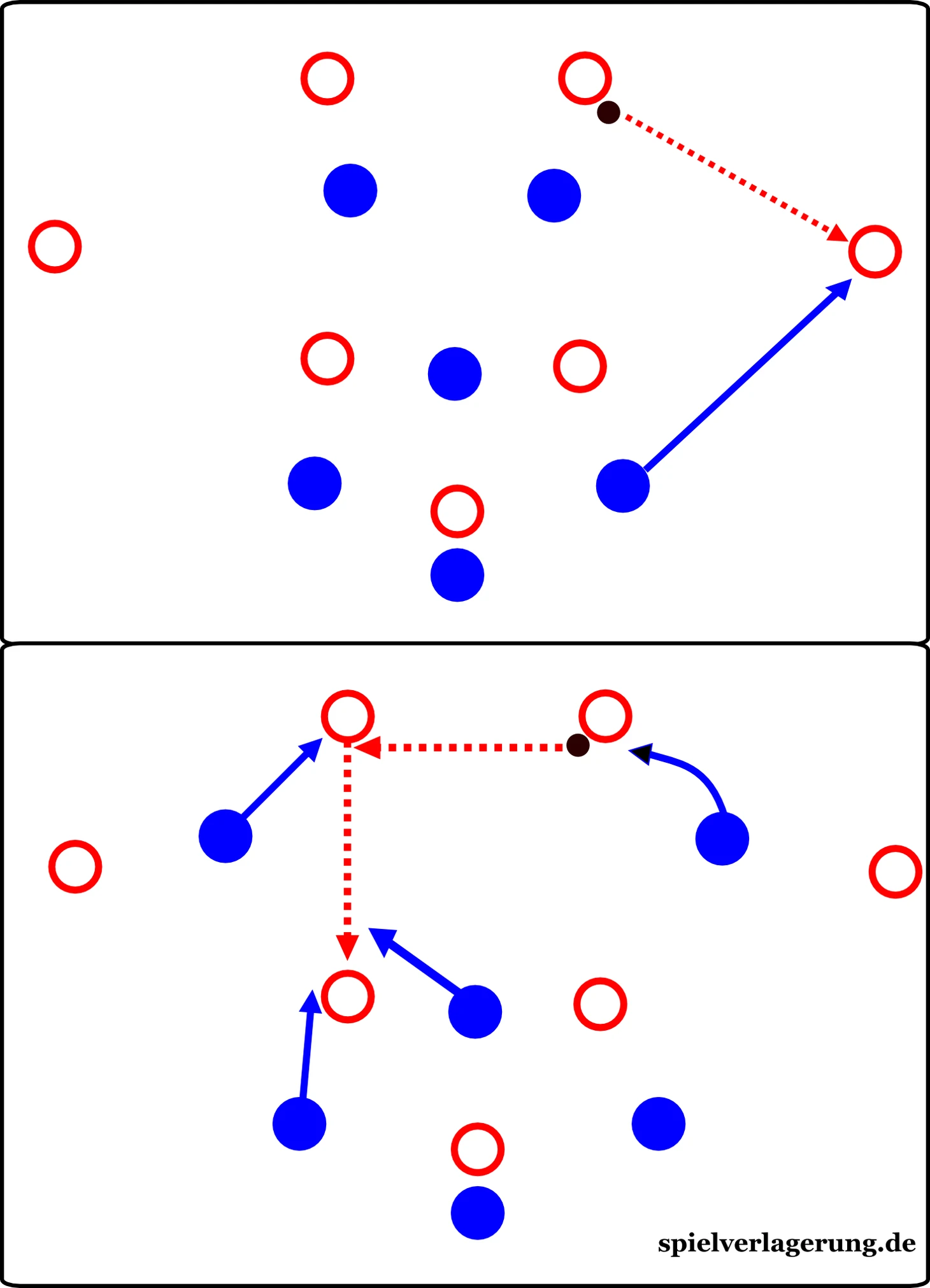 Если мы блокируем соперника, он получает время на поиск решения. Если мы всегда правильно блокируем соперника, этим решением будет пас назад. Потом один пас вперед, а затем снова назад – без продвижения. Но это все равно пассивная оборона. Это один из вариантов, но он часто приводит к тому, что команда сильно прижимается.