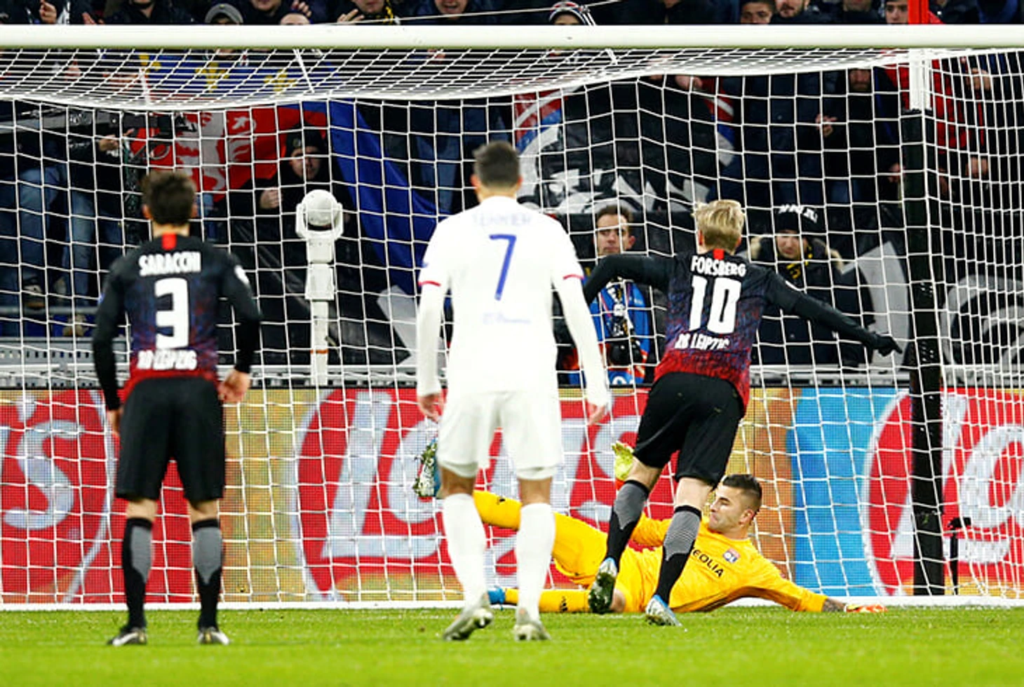 9-я минута. «РБ Лейпциг» реализует пенальти во Франции. Становится спокойнее.