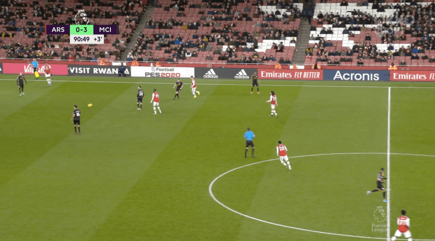 Вот так Кэлум Чемберс выходит из обороны – момент, который показывает безнадежность даже мощнее, чем пропущенные голы.