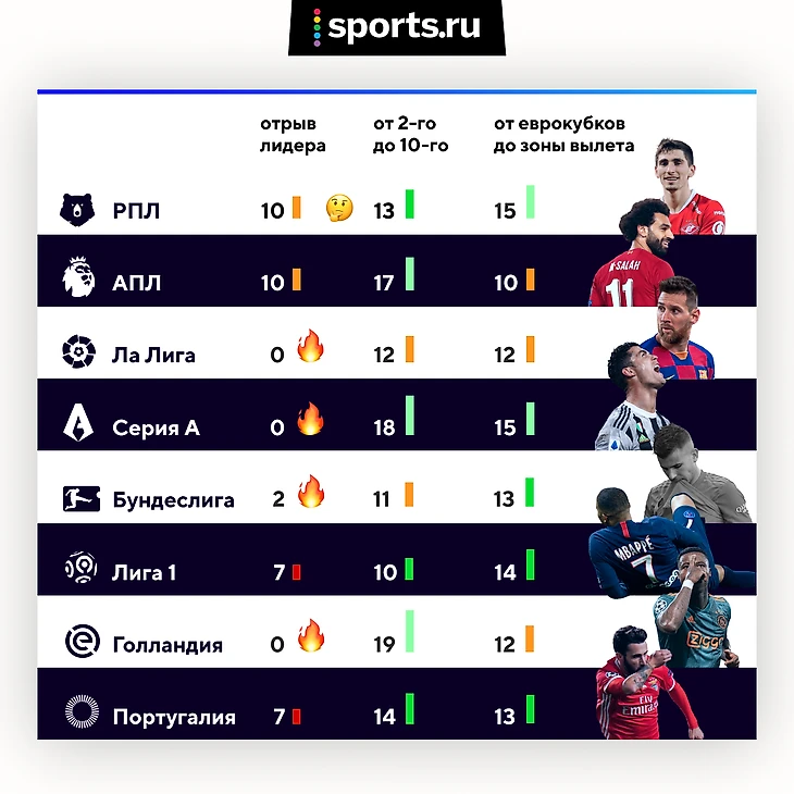 Что видим? РПЛ в числе худших по двум критериям, а еще по третьему – в серединке.