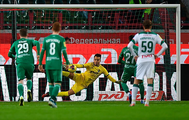 • На удивление, к мячу подошел сам Визеу. Если вы вдруг впервые услышали о таком игроке, то краткая справка: это 22-летний бразилец из «Удинезе», который проводил первый матч за «Ахмат» (он в аренде). Визеу хитро семенил и вынуждал Гильерме сорваться с места раньше времени, но вратарь сборной России хорошо поймал момент и пошел в сторону только тогда, когда игрок «Ахмата» уже не мог поменять направление удара. В итоге Гильерме отбил удар, а «Локомотив» все-таки победил.