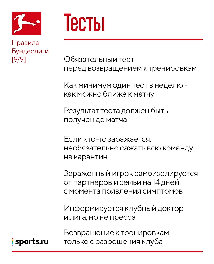 Бундеслига объявила о возобновлении сезона с 16 мая, добро от властей получено. При этом в Германии довольны не все, особенно на фоне положительных тестов у двух игроков «Кельна». Один из способов избежать вспышек – детальнейший свод правил для футболистов, которую, правда, уже некоторые нарушили.