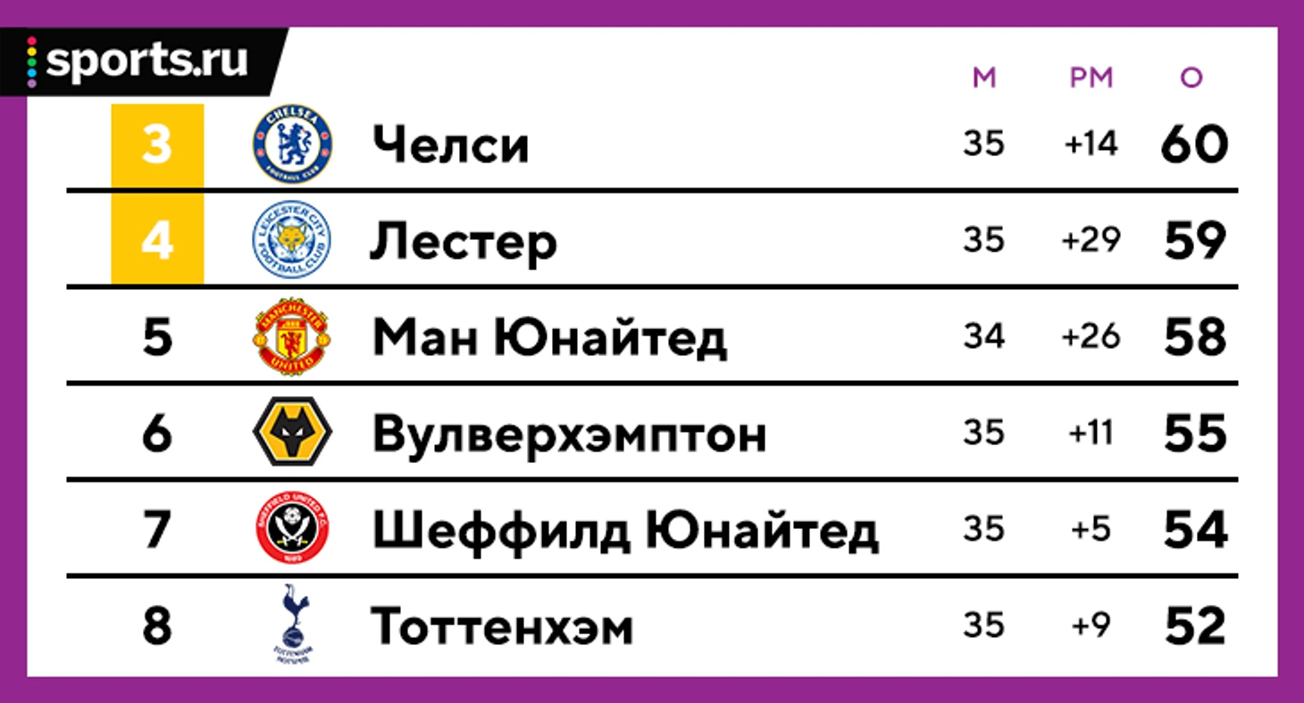 Две оставшиеся путевки разыграют «Челси», «Лестер» и набравший ход «Манчестер Юнайтед». Плюс в игре остаются «Вулверхэмптон», «Шеффилд Юнайтед» и даже «Тоттенхэм».