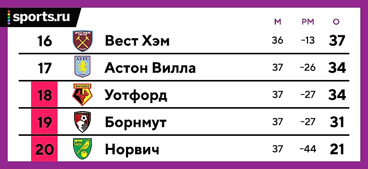 • «Уотфорд» крепко влип: впереди гостевой матч с «Арсеналом» и нервная сверка с результатами других команд. Разгромом от «Сити» «Уотфорд» капитально ухудшил разницу мячей – именно по этому показателю он сейчас уступает «Вилле».