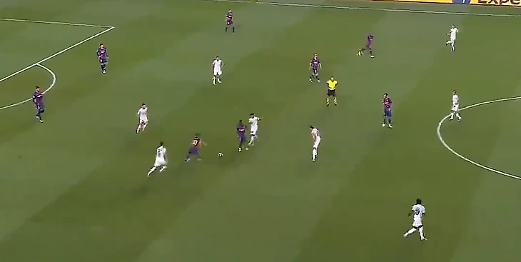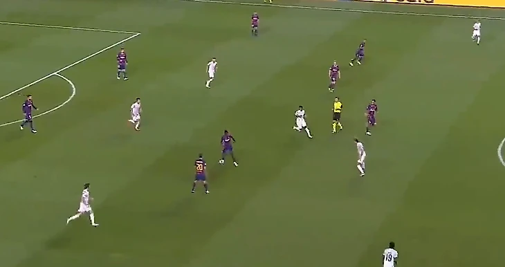 Мы привыкли, что та самая премиальная «Барса» играет максимально широко при своих атаках, но здесь механизм сломался. В итоге Семеду просто пихнул мяч Роберто, а того резко накрыли. Контрпрессинг «Баварии» сработал блестяще.