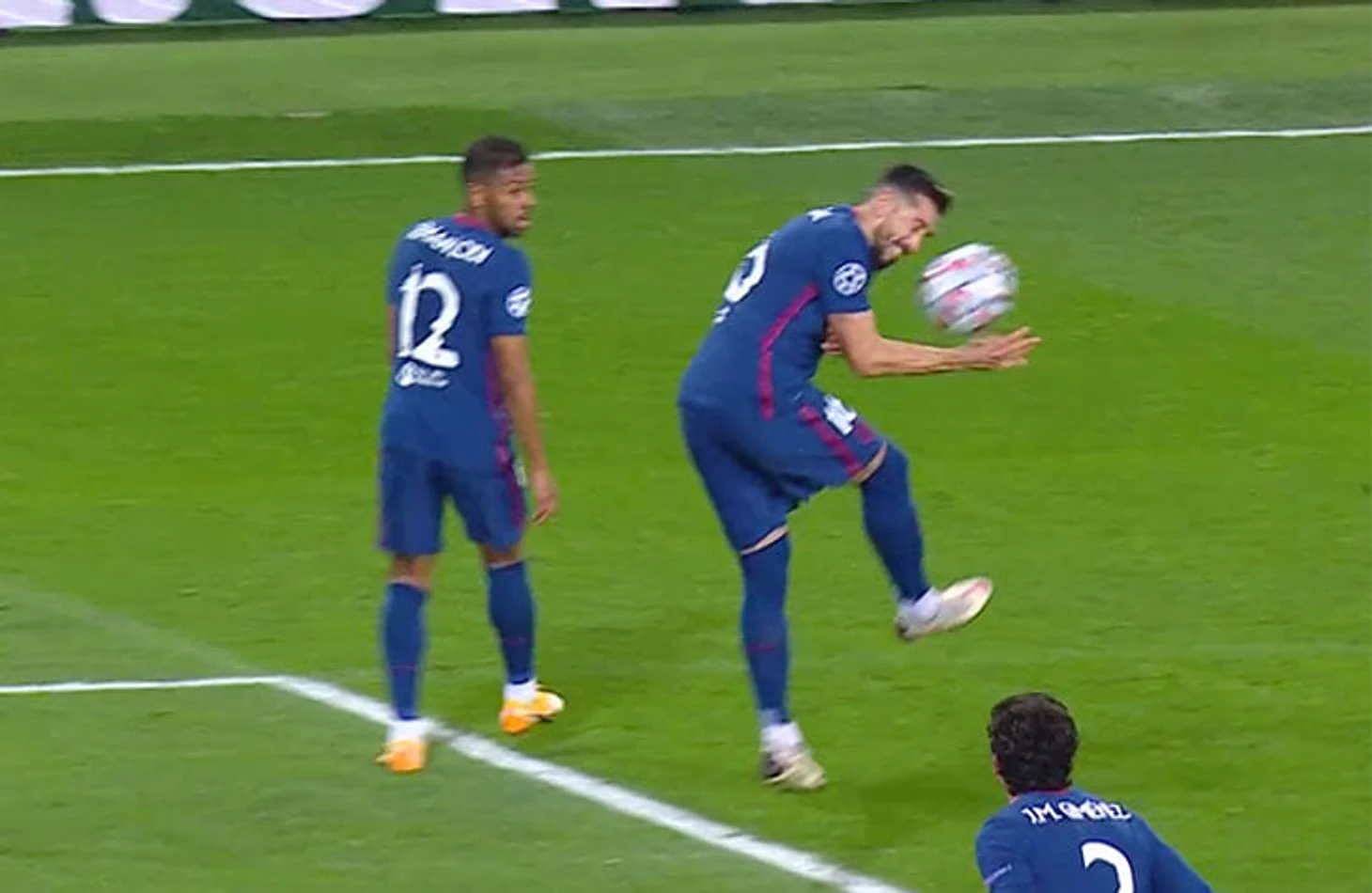 • Окей, значит, ненамеренно – почему же это все равно пенальти? Эррера сыграл высоко поднятой и согнутой рукой – таким образом тело стало неестественно больше, выбившись за привычный силуэт.