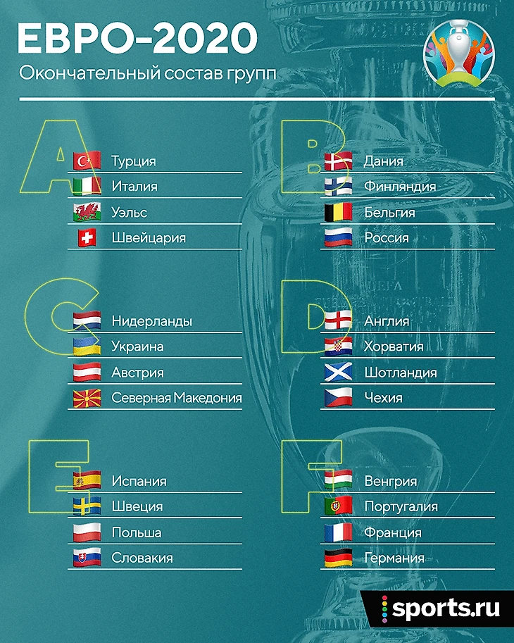 Для каждой из них уже было предусмотрено место в сетке, теперь есть полный состав групп Евро-2020. Наслаждайтесь!