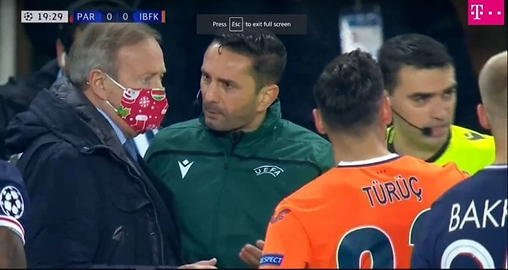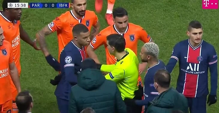 15 минут в матче «ПСЖ» – «Истанбул» навсегда войдут в историю. В трансляцию прорвались некоторые переговоры судей на румынском и выкрики футболистов на разных языках, но полной картины не было ни у кого (кроме УЕФА, которая изъяла записи из микрофонов судей). Румынский журналист Эмануэль Рошу прослушал трансляцию с чистым интершумом (без комментаторов) и почти дословно восстановил ключевые диалоги.