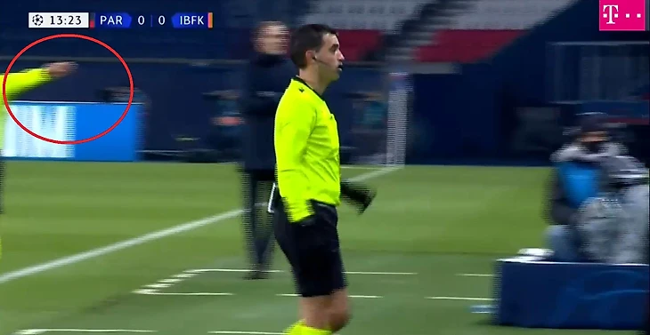 Рошу отдельно отмечает, что это сказал именно Совре, а не Кольцеску. Руку бокового видно на этом скриншоте – он указывает главному судье на нарушителя.