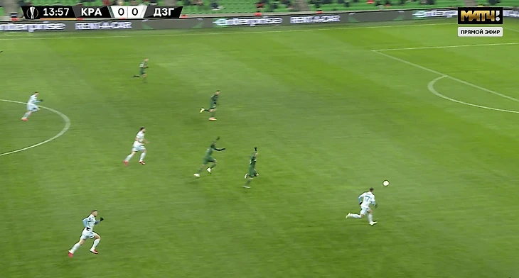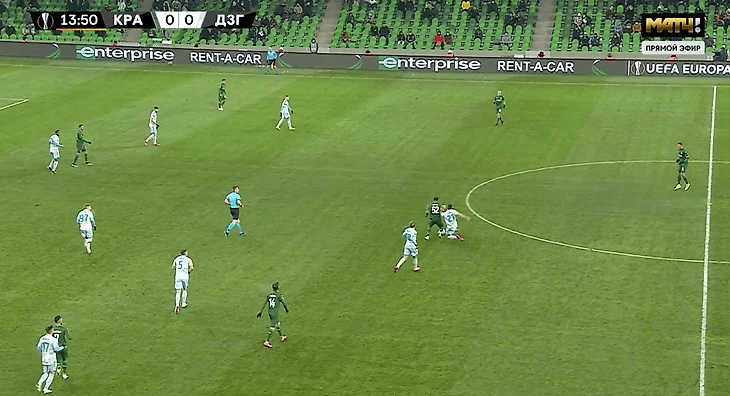 «Краснодар» в целом пытался доминировать (все-таки 66% владения), но мало что контролировал – регулярно проваливался, оставляя большие пространства для «Загреба».