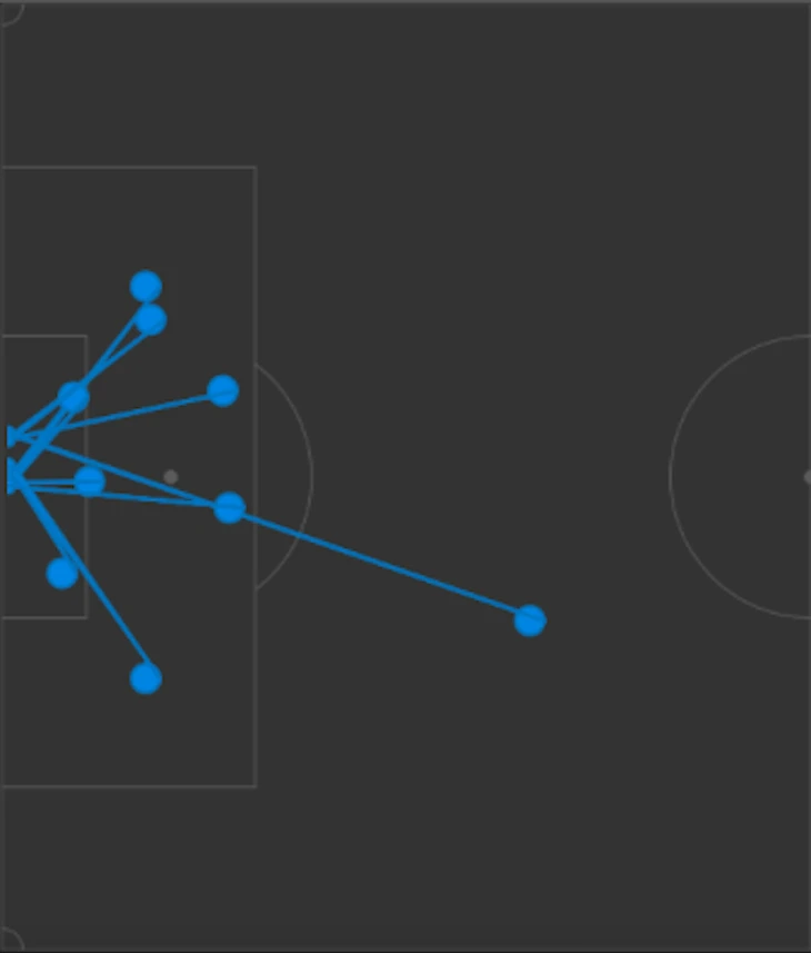 На этой карте только удары в створ Городова, количество попыток из штрафной впечатляет.