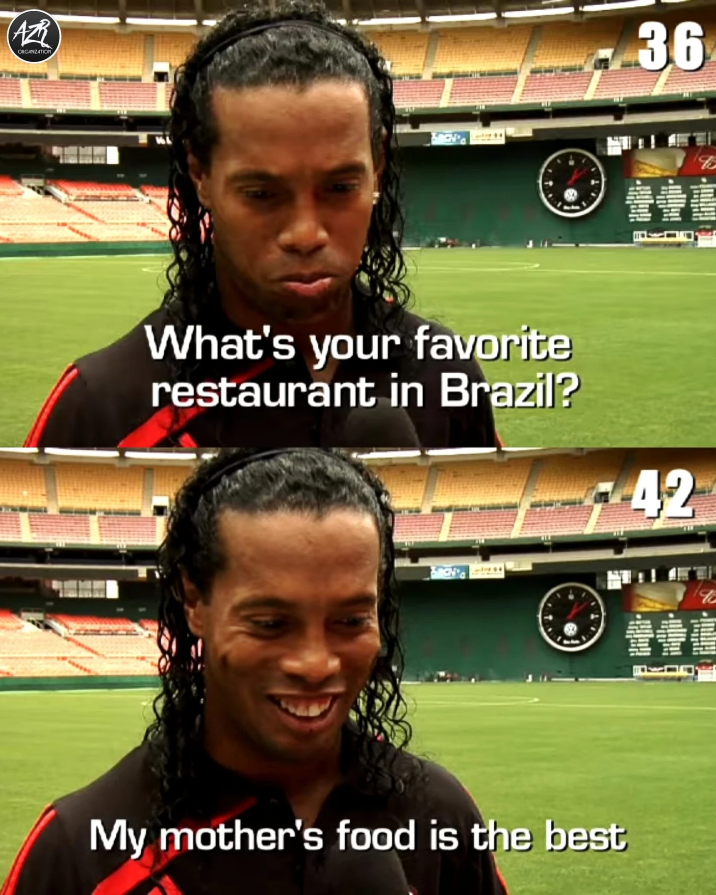 Роналдиньо убежал от операторов, сел на трибунах рядом с мамой и угостил ее вкусняшками. Мигелина забрала пачку и отправила сына на поле.
