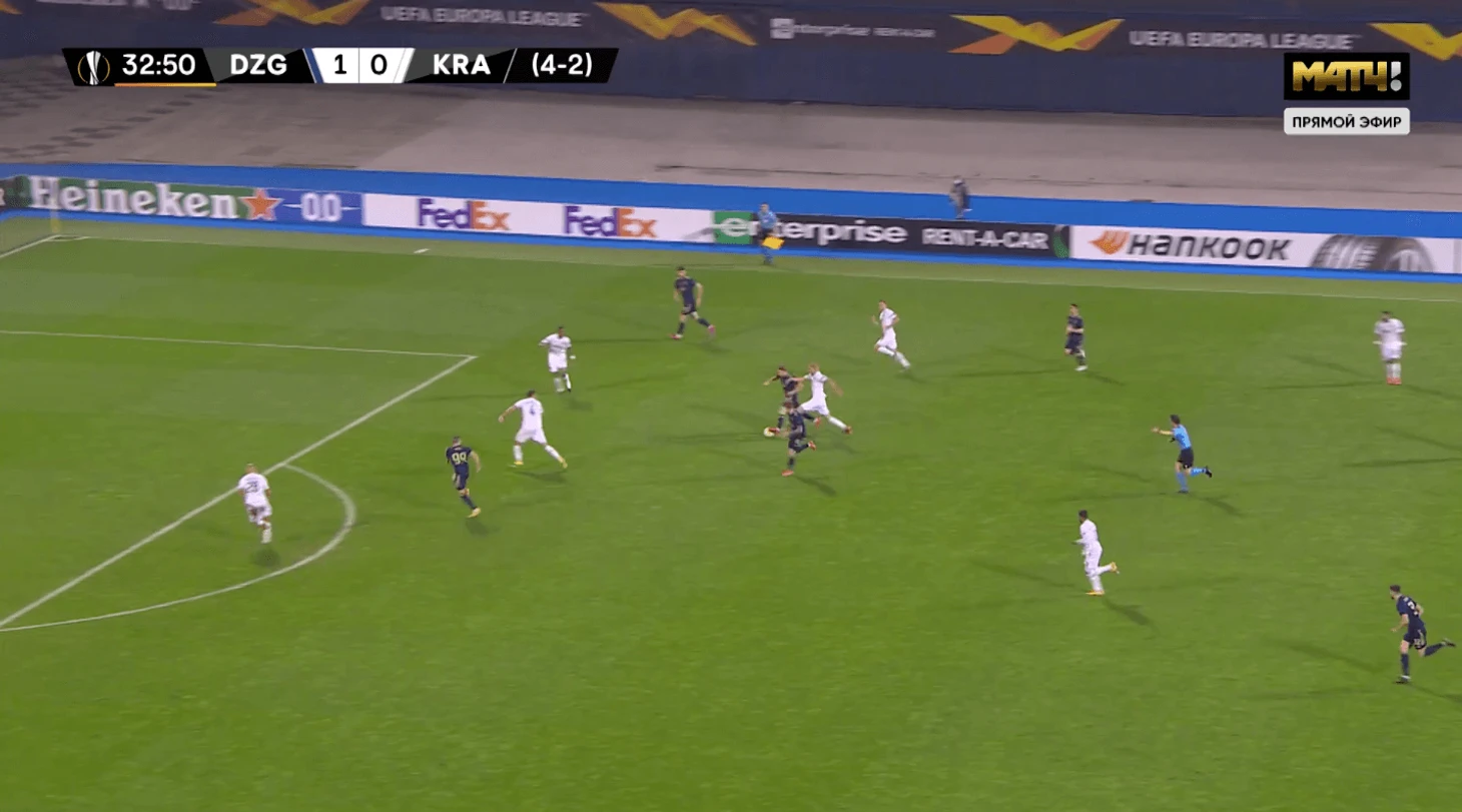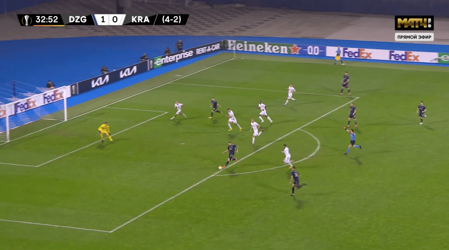 «Загреб» проходит защиту «Краснодара» и не забивает второй по немыслимой причине.