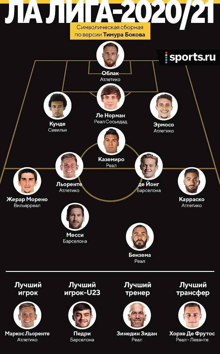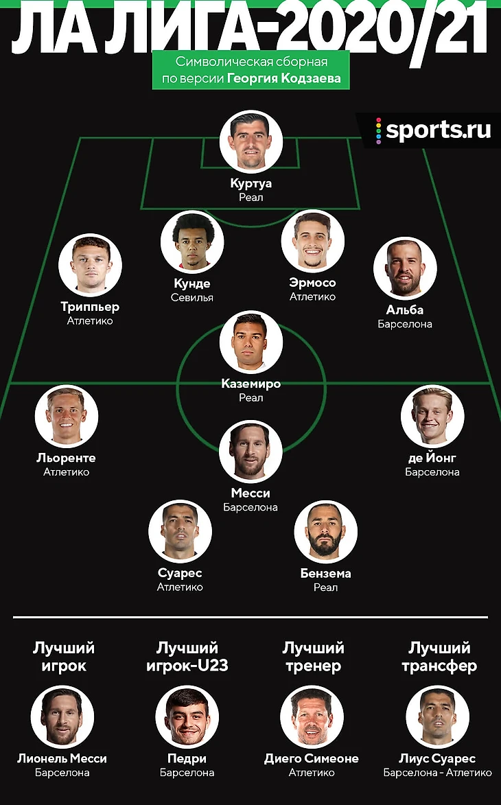 Лучший молодой игрок – Педри. Настолько зрело провел первый сезон в «Барсе», что реально не верится, что ему всего 18. Бонус – отличная химия с Месси.