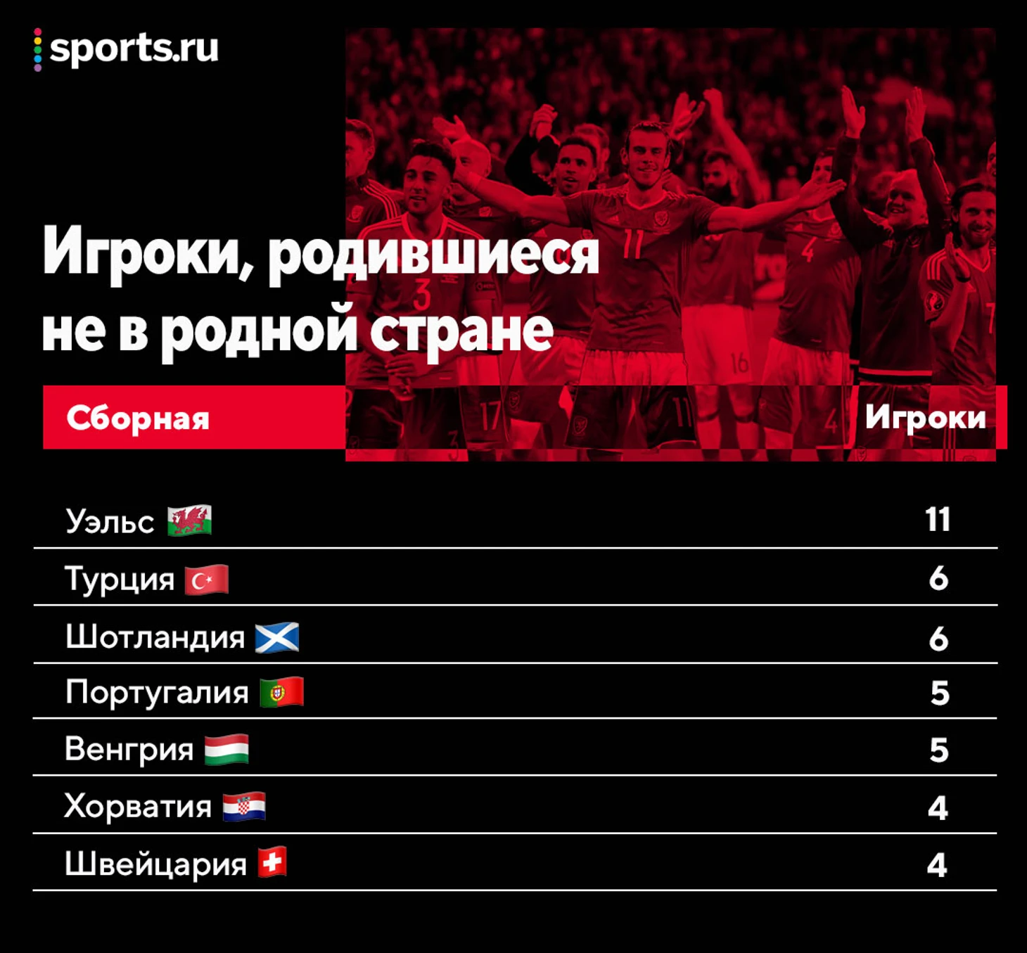 Можно было догадаться, что в рейтинге футболистов, родившихся не в родной стране, победит опять Уэльс. Шотландия в тройке тоже не удивляет.
