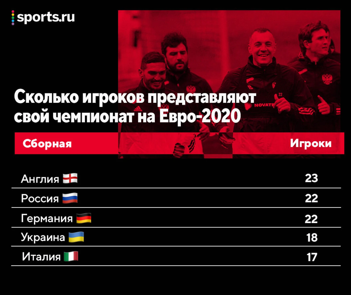 Заявки всех сборных на Евро уже известны, поэтому можно посчитать, сколько футболистов играют в чемпионате своей страны, а сколько легионеров.