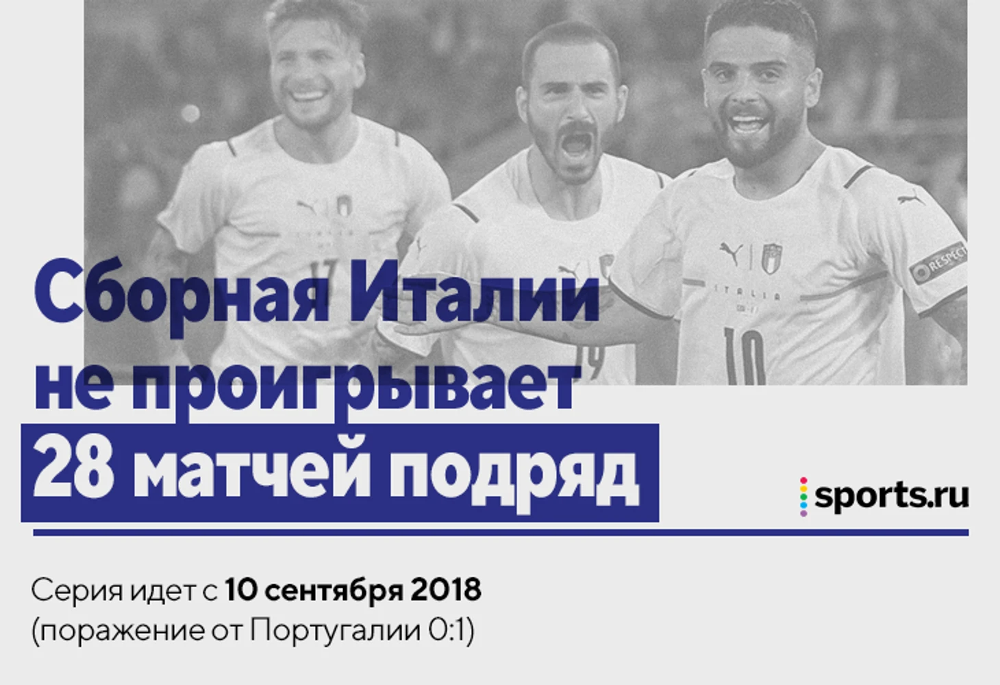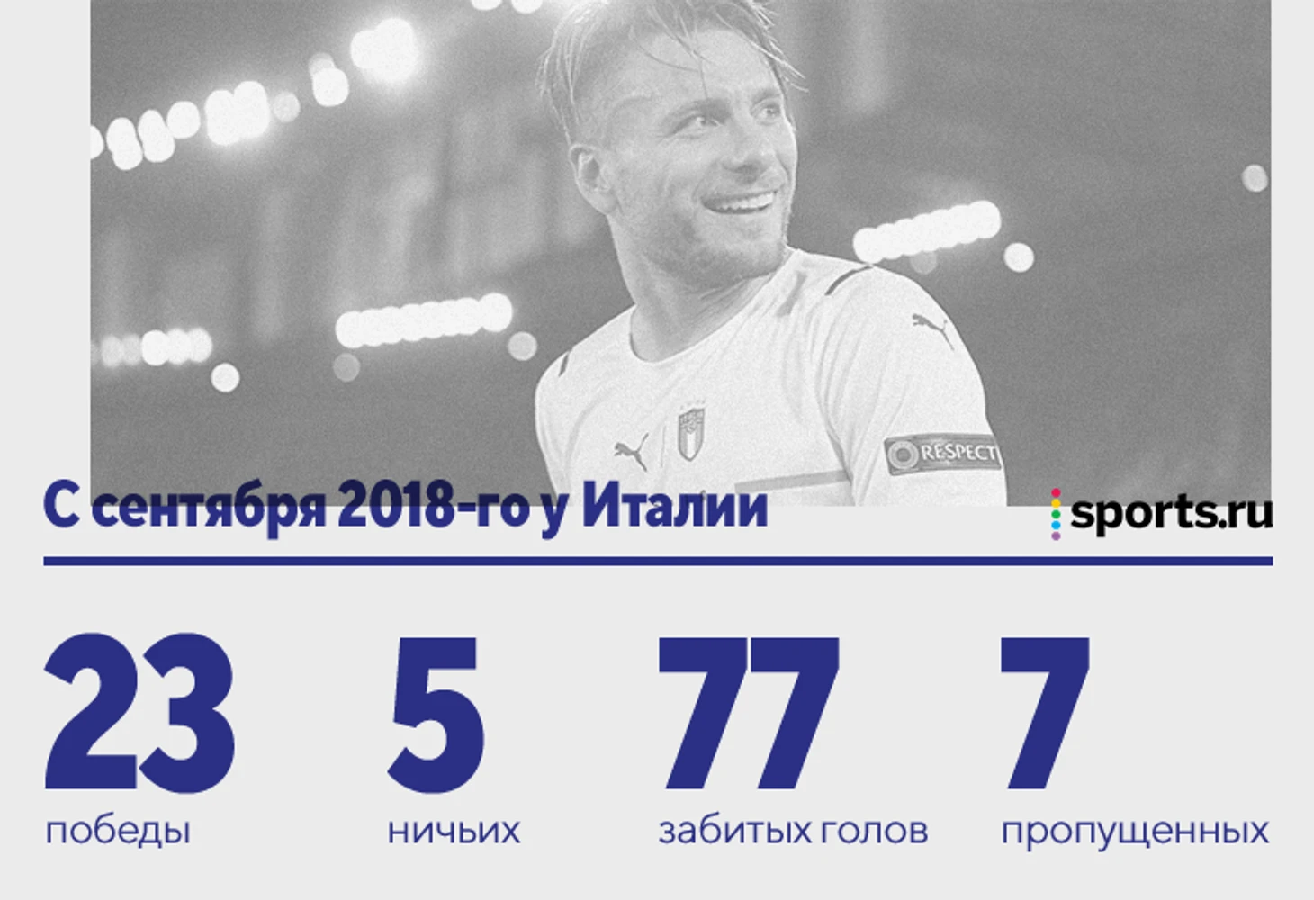 У итальянцев продолжается впечатляющая серия: это уже 28-й подряд матч без поражений. Эту серию запустили осенью 2018-го, с тех пор Италия не проигрывает ни в официальных, ни в товарищеских матчах.