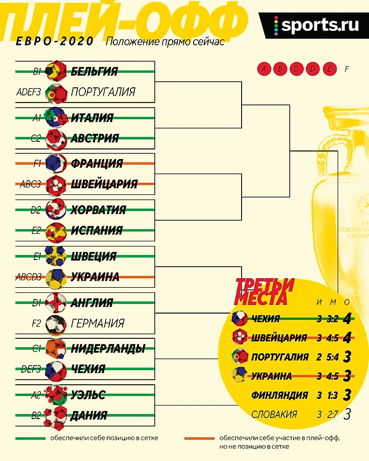 Развязка группы B порадовала не только испанцев со шведами, но и Украину – для нее все сложилось идеально. Шведы обыграли Польшу (3:2, там был самый быстрый гол этого Евро), испанцы вынесли Словакию (5:0, все началось с нелепейшего волейбольного автогола вратаря) – в итоге на третье место опустилась Словакия.