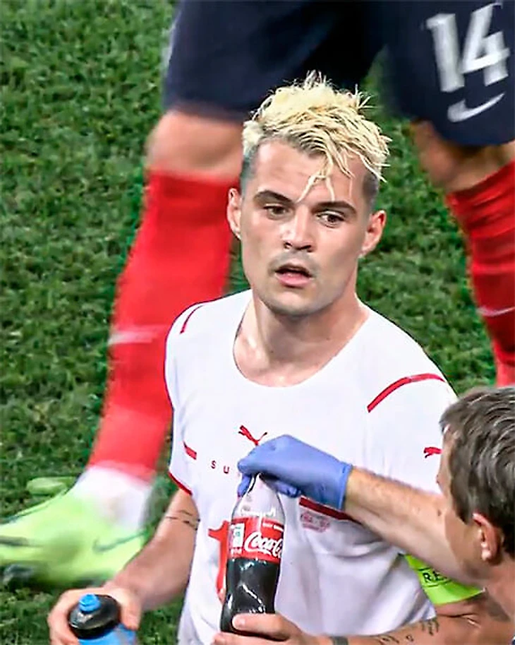 Когда в матче Франция – Швейцария закончились 120 минут, Гранит Джака попросил у скамейки, чтобы ему подали бутылку колы.