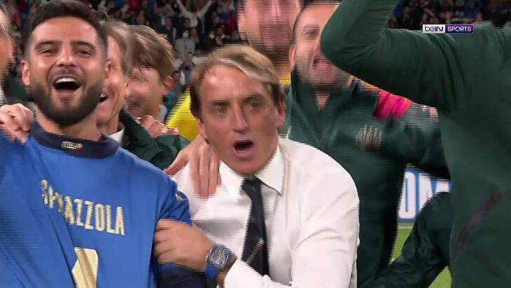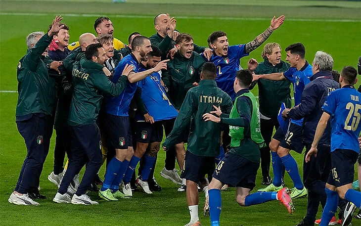 Когда заканчивалась телетрансляция полуфинала Испания – Италия, вы могли видеть такие кадры. Итальянцы, собравшись всей командой, включая тренеров и другой персонал, обнялись и кричали.