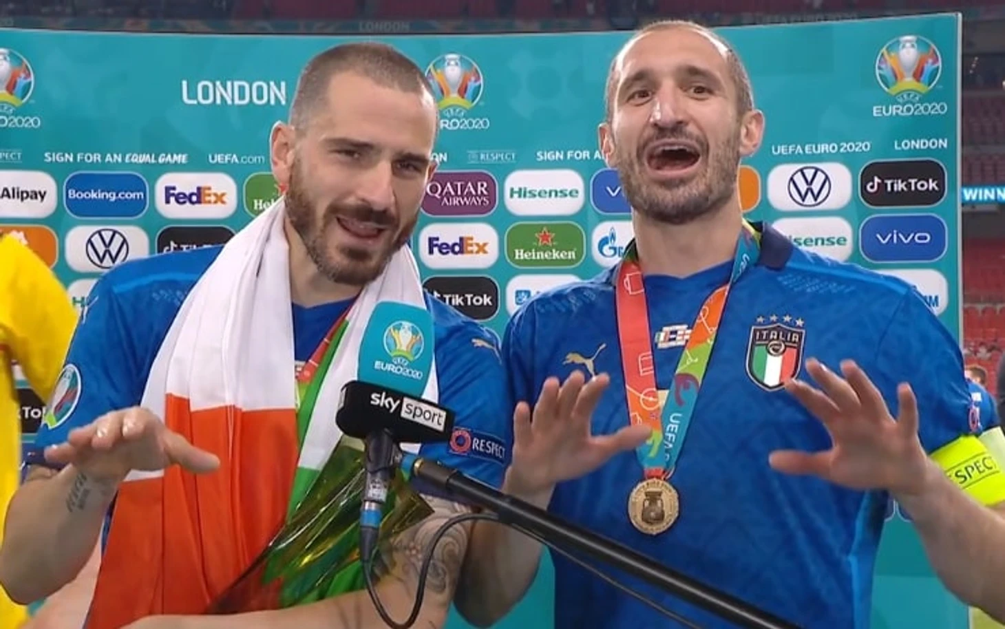Кьеллини и Бонуччи в обнимку дали флэш-интервью с похожим посылом: