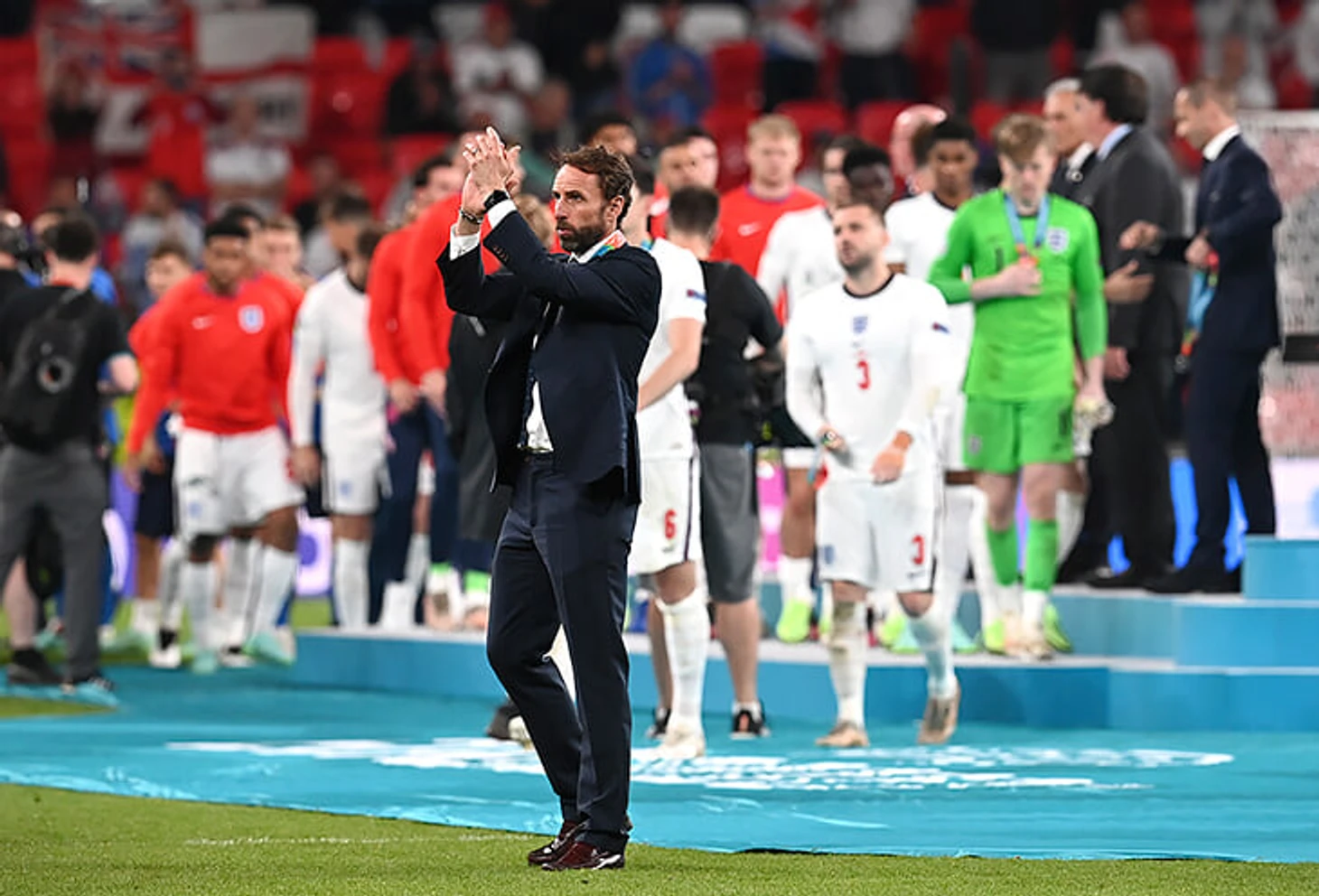 Конечно же, все ждали выступления главного тренера. К Гарету Саутгейту были вопросы по выбору пенальтистов – Гарет взял всю вину на себя. И очень хвалил игроков.