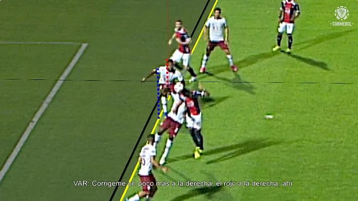 Из-за слишком узкого ракурса линию несколько минут чертили по игрокам, находившимся в штрафной, вот по такому кадру: