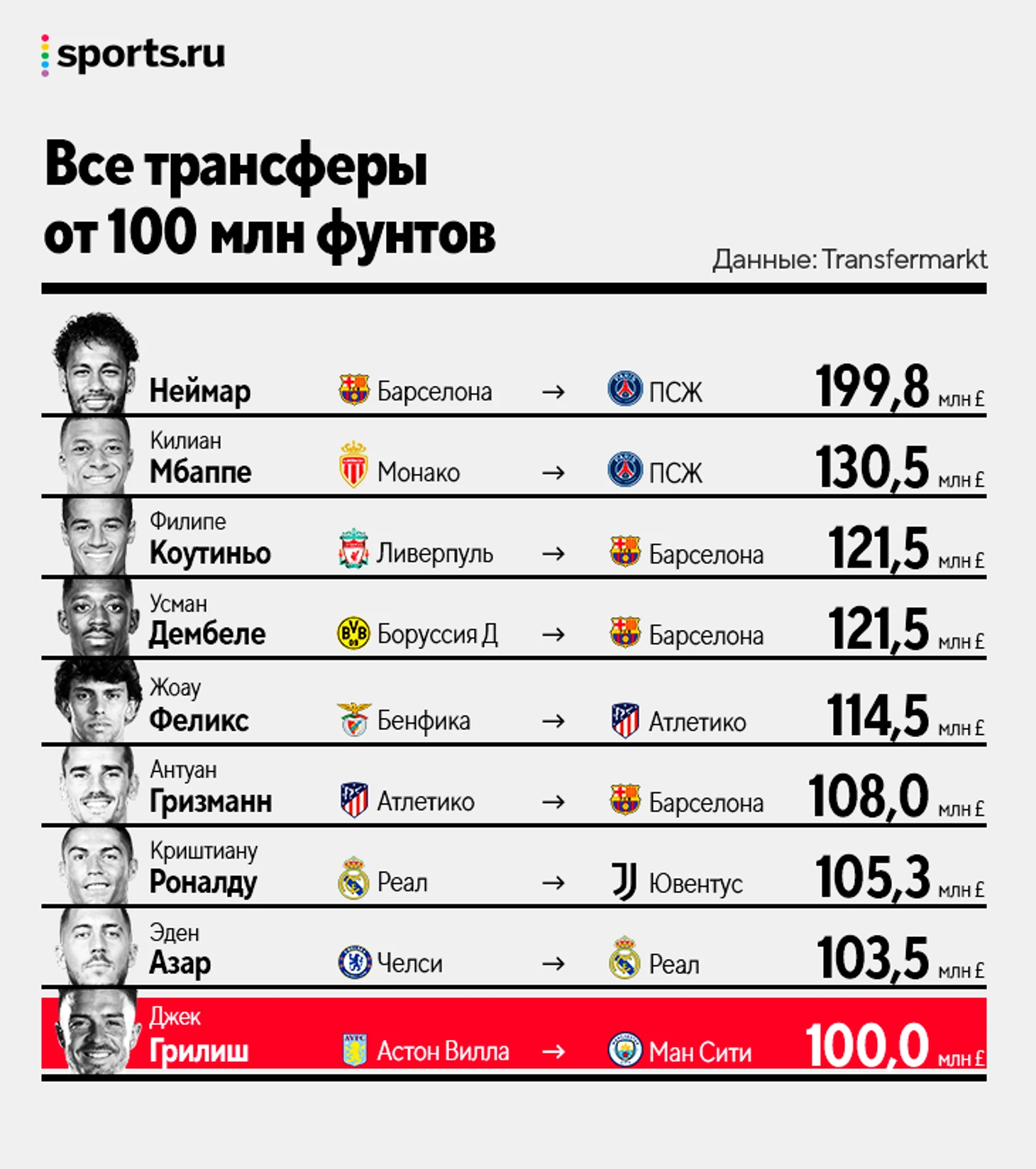 Мы собрали еще 8 трансферов, превысивших барьер в сто миллионов.