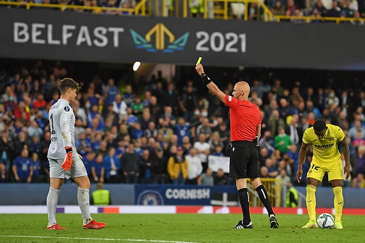 Последнее предупреждение от Сергея прилетело Кепе во время серии пенальти – перед каждым ударом испанец выходил к мячу и в итоге выпросил предупреждение.