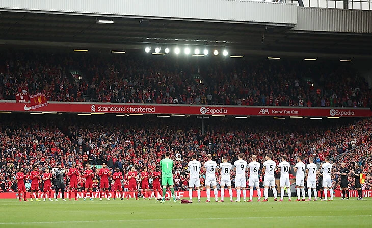 В воскресенье «Ливерпуль» дома принимал «Бернли». Для всех фанатов «красных» помимо матча произошло еще одно важное событие – минута молчания в честь Эндрю Дивайна, который три десятка лет страдал после травм, полученных в давке на «Хиллсборо» (15 апреля 1989 года 96 фанатов «Ливерпуля» не вернулись с выезда в в Шеффилд на полуфинал Кубка Англии, они погибли в страшной давке из-за того, что трибуна не была рассчитана на столько людей).