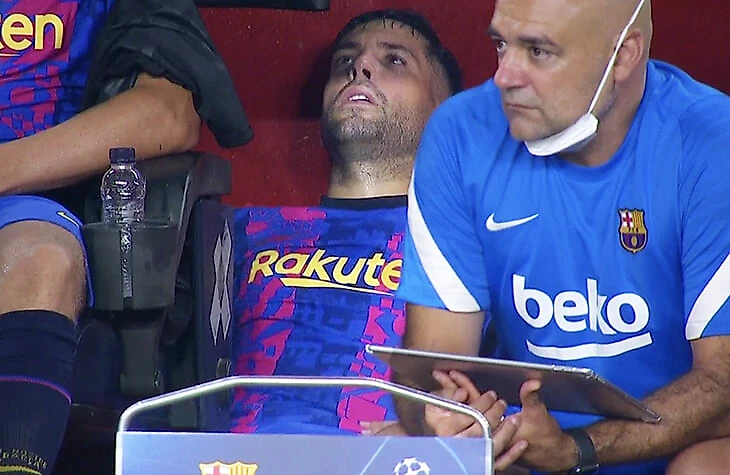 Сначала – скриншот из трансляции матча «Барселона» – «Бавария» (0:3). Жорди Альбу только что заменили – и его лицо идеально передает страдания всех, кто любит «Барселону».