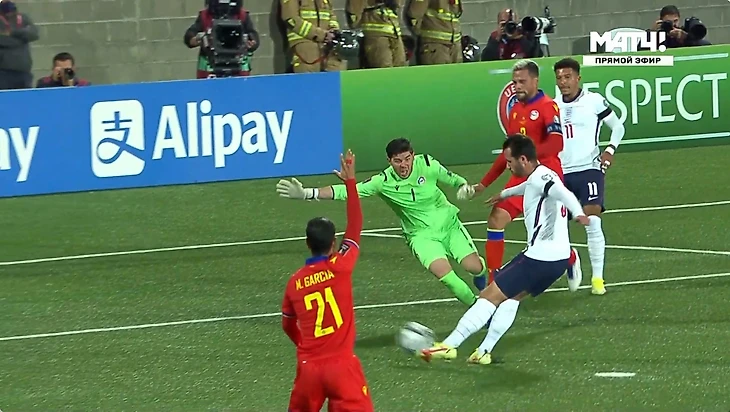 Забавно, что андоррский футболист, из-за которого офсайда так и не случилось, до конца голевой атаки простоял с поднятой рукой.