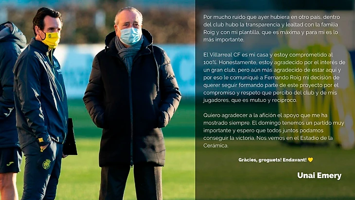«Независимо от шума в другой стране, в отношениях с семьей Роиг, управляющей «Вильярреалом», и моими игроками была максимальная прозрачность – это самое главное.