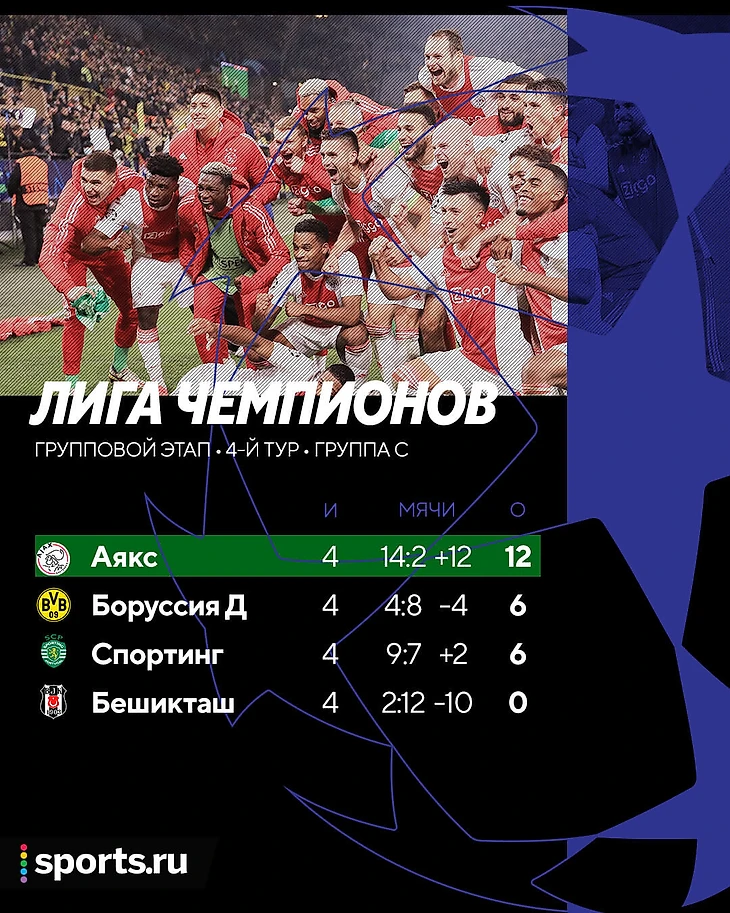 • «Аякс» вырвал камбэк-победу в гостях у «Боруссии» Д и гарантировал себе плей-офф. Но все-таки пока не первое место: шансы остаются у «Спортинга».