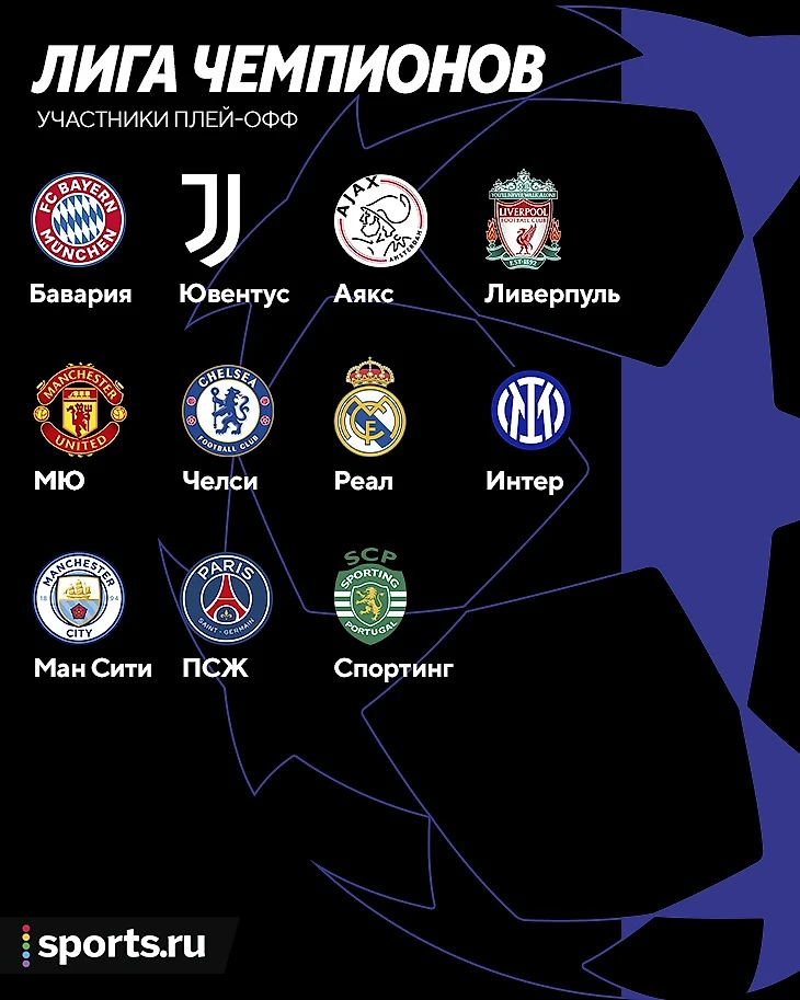 А вот и список всех команд, вышедших в 1/8. Добавились «Реал», «Интер», «Манчестер Сити», «ПСЖ» и «Спортинг».